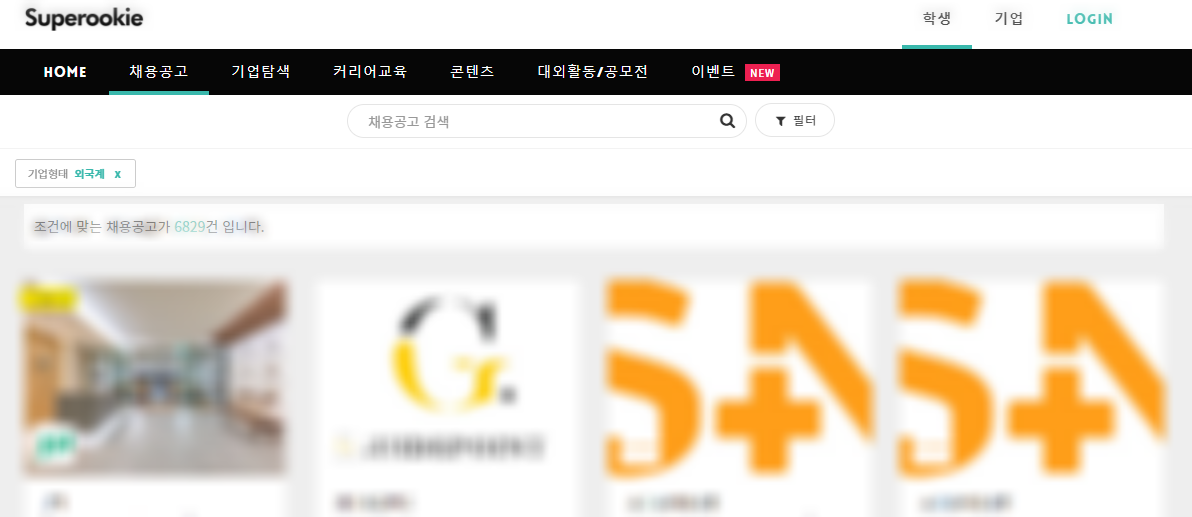 슈퍼루키는 주로 인턴 및 신입 공고 위주인데요~ 채용공고 후 필터에서 외국계를 선택하시면 됩니다. 외국계는 경력을 중시하고 또 그 경력이 외국계에서의 경력이라면 면접이나 채용 시 유리하게 작용합니다. 경험이나 경력이 없으신 분들께 추천하는 사이트입니다.