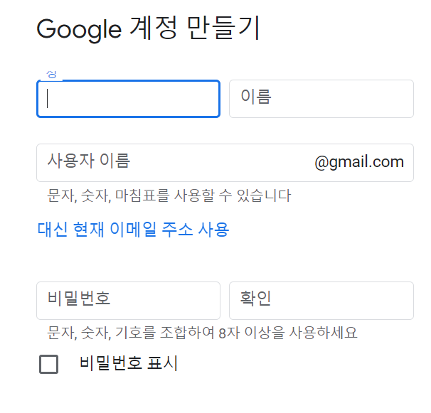 성하고 이름 아무거나 넣어도됨 꼭 내 이름일 필요는 없더라구요.