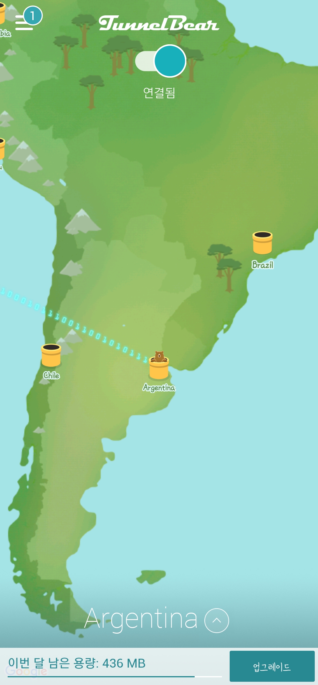 아르헨티나로 국가 변경하시고 위쪽의 버튼눌러주시면 곰돌이가 연결됨 뜨는데요, 그러면 저희는 트랜스 아르헨티나인이 되었다는 의미입니다.