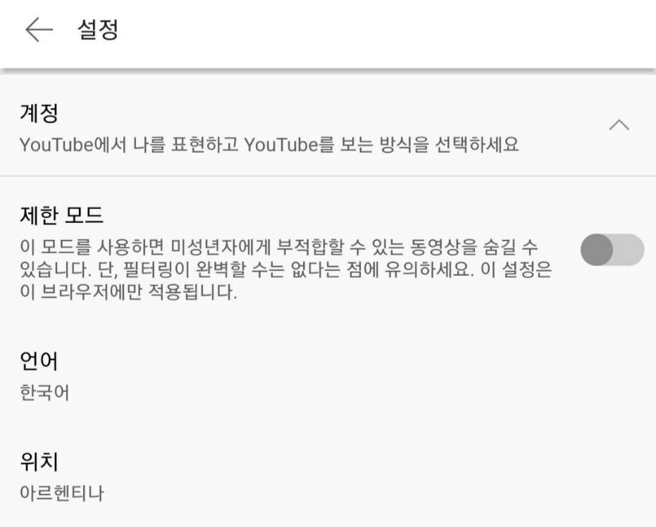 그러면 초대받는 사람은 VPN을 켜서 (크롬-유튜브-설정-계정으로 들어가서) 위치가 아르헨티나인 것을 확인하고 gmail어플 들어가서 초대장 수락을 누르면 됩니다.