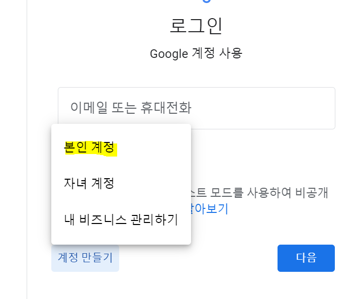 위 사진처럼 본인 계정_계정만들기로 들어가기