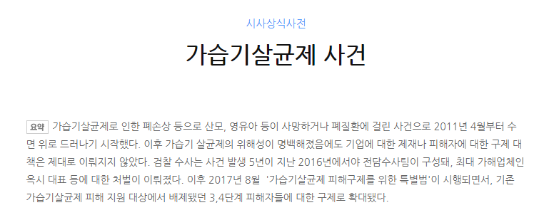 가습기 살균제 사건을 기억하시나요?