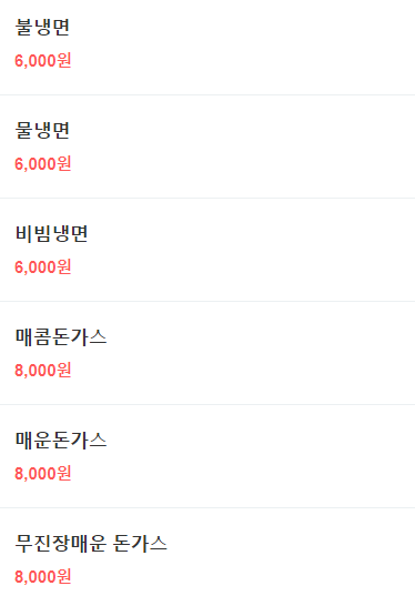 냉면은 6000원이고 돈까스는 8000원. 기억하기로, 옛날보다 가격은 오른 것 같음. 그래도 요즘 물가 생각하면 매우 REASONABLE 합니다..
